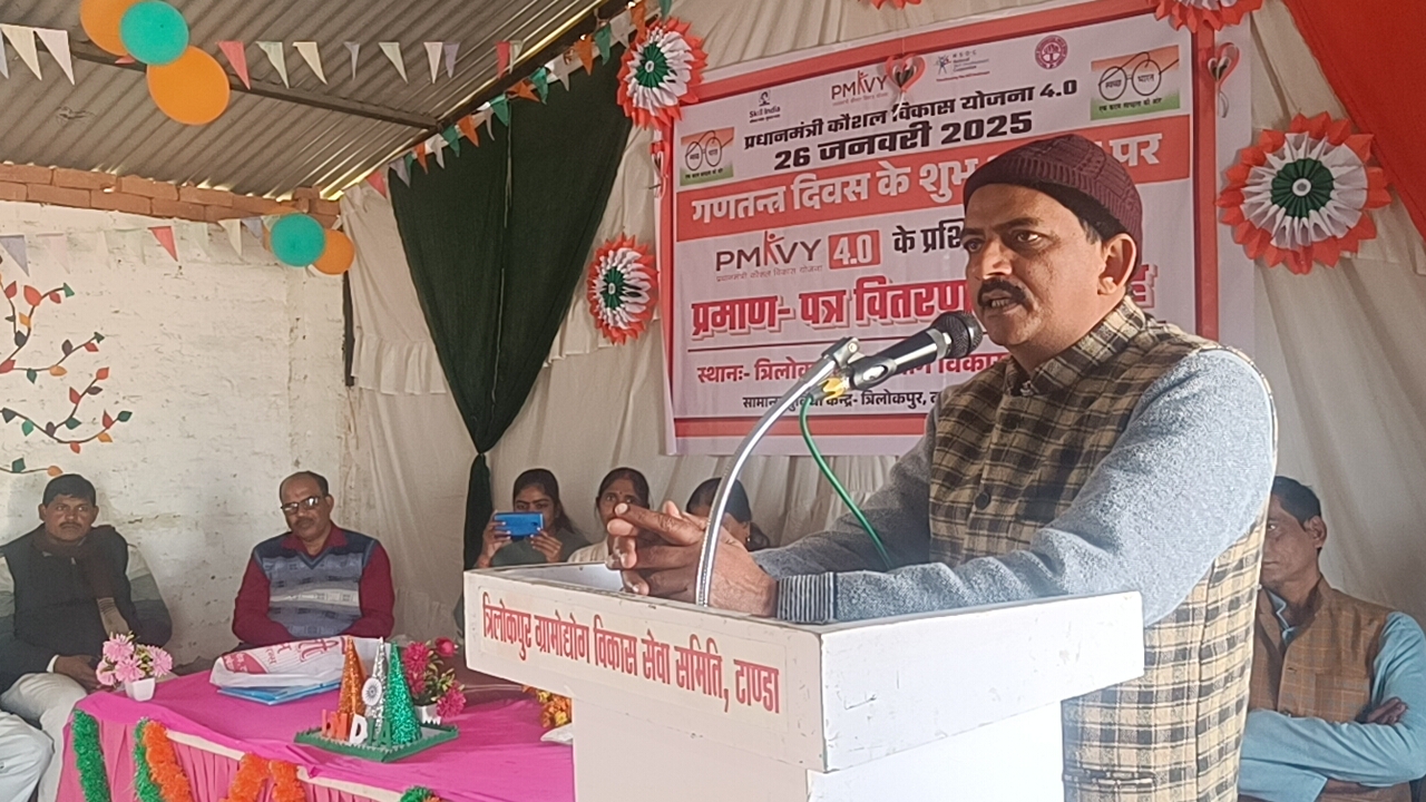 | स्वेटर बुनाई केन्द्र का निरिक्षण करते कपार्ट के निर्देशक श्री सोहन श्रीवास्तव | |